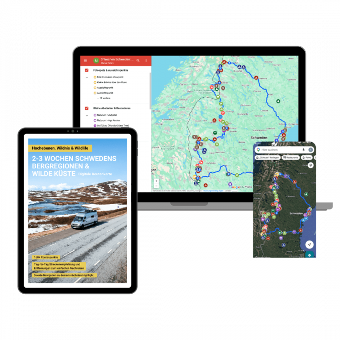 Digitale Routen-Karte: 2-3 Wochen durch Schwedens Hochebenen