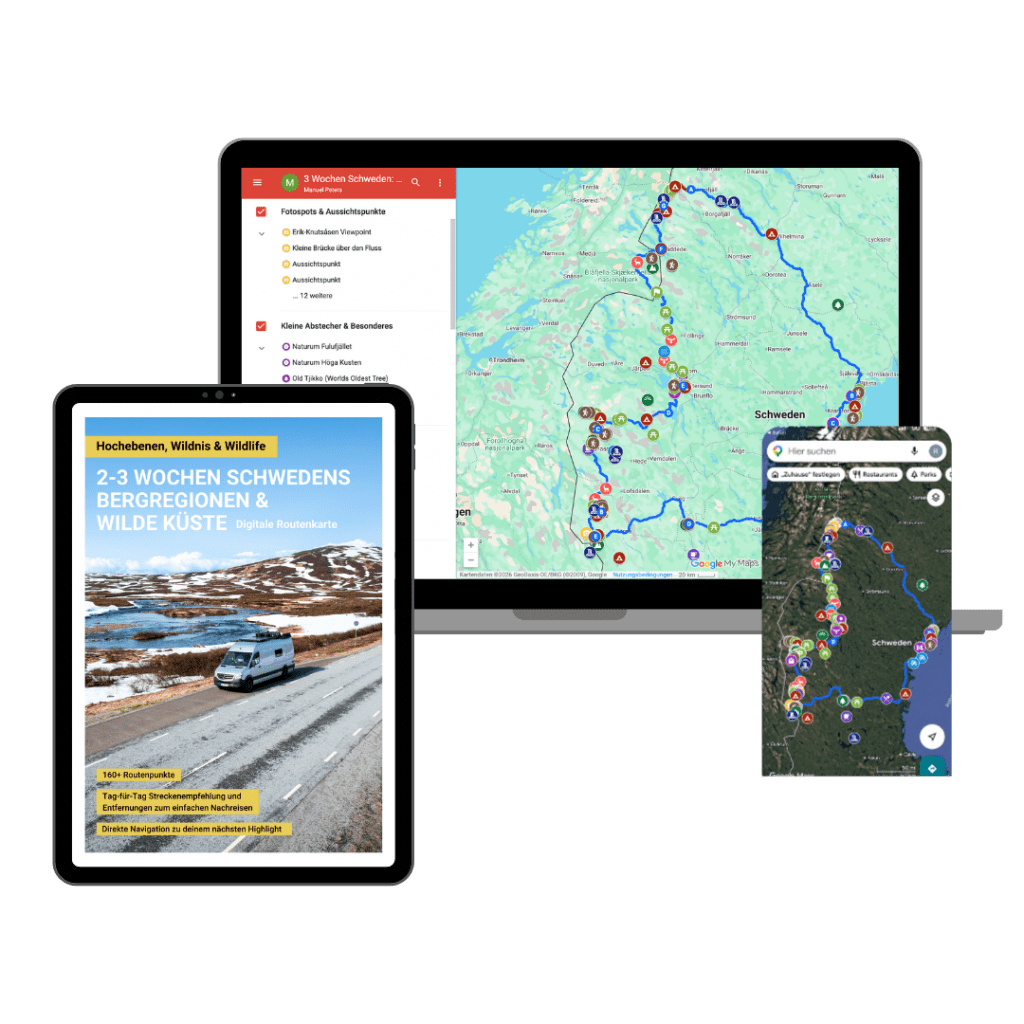 Digitale Routen-Karte: 2-3 Wochen durch Schwedens Hochebenen